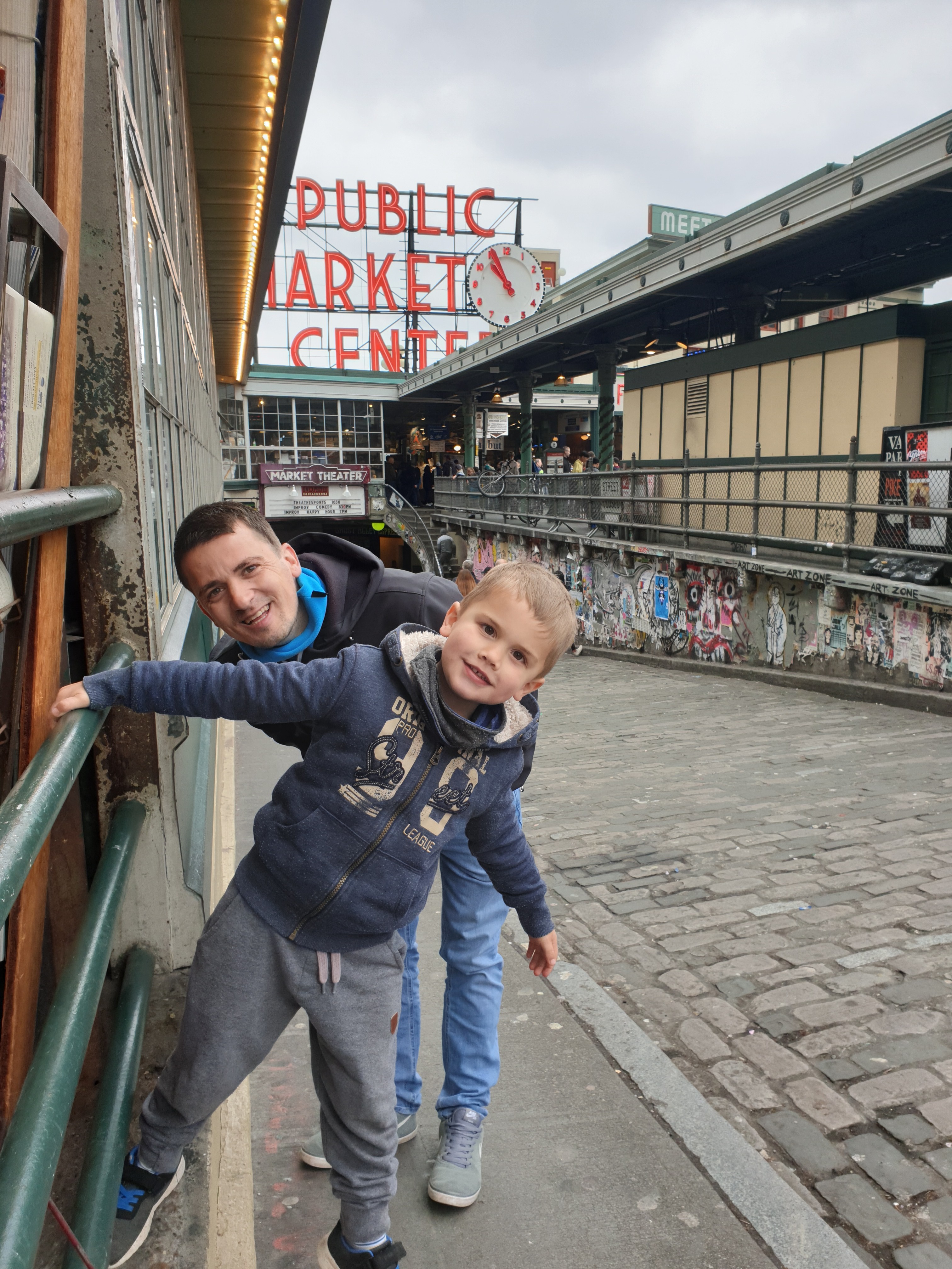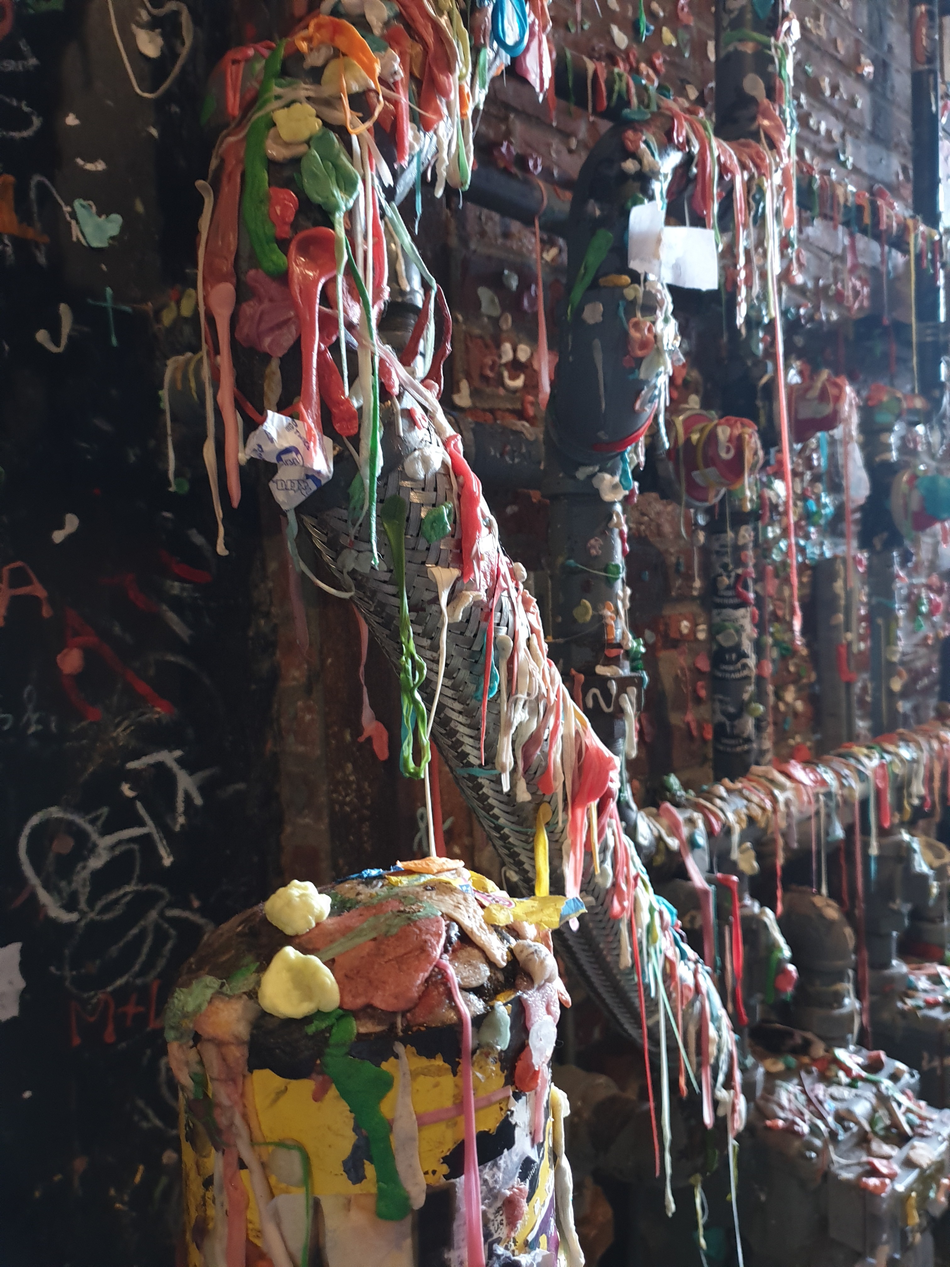 Ein Spaziergang durch Downtown führt uns über den Pioneer Square und Pike Place Market zur „Gum Wall“ – ein wenig eklig ist es schon 🤭, bis hin zur Monorail Station, von der wir bis zur Space Needle fahren, um mich meiner Höhenangst zu stellen 😳