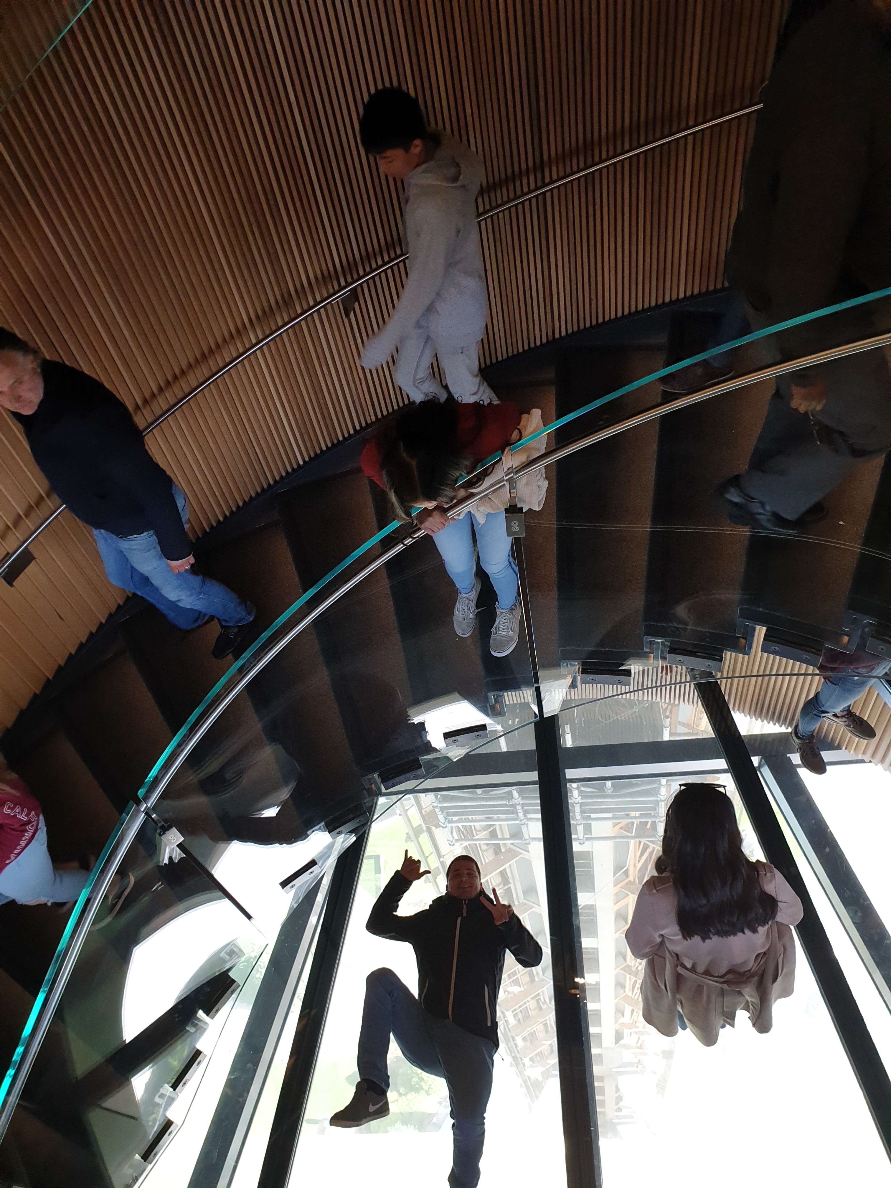 Äh- ja , da liegt Philipp auf einem Glasboden, welcher den Abgrund nicht nur erahnen lässt… Alleine das Foto zu machen war schon eine Herausforderung für mich.