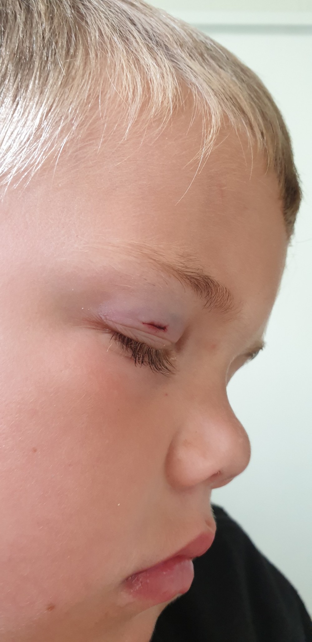 Heute habe ich tatsächlich öfter auf die Blicke unserer Mitmenschen geachtet, da ich manchmal befürchtete, man hält uns für Rabeneltern, die ihren Sohn verprügeln, so wie er gerade aussieht.