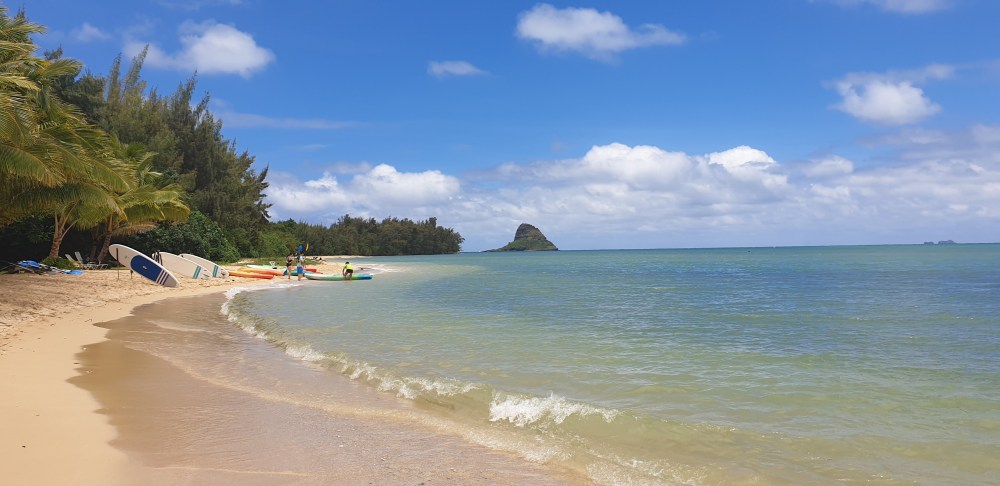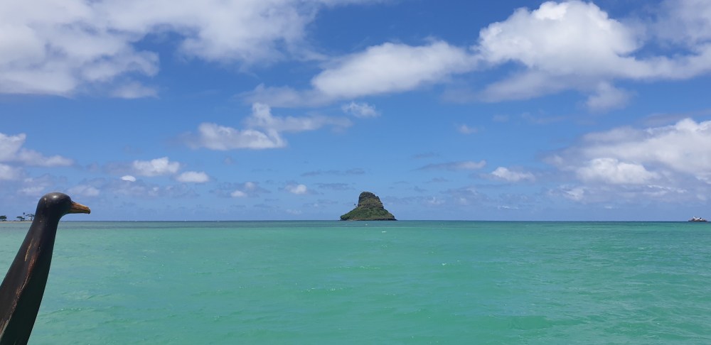 Dafür hatte man zumindest einen schönen Blick auf die Kualoa Berge und den Chinamans Hat!